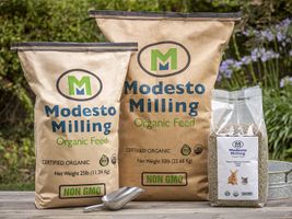 We have a variety of organic chicken and animal feed from Modesto Milling. Our inventory of feed includes layer pellets and crumble for laying hens, chick start for baby chicks, soy and corn free feeds, as well as feed for ducks, goats, and rabbits. If there is any feed you would like for us to special order from Modesto just give the store a call and we can try to arrange that for you!